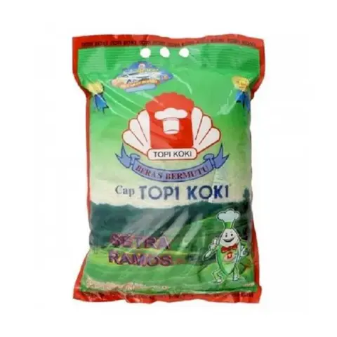 Merupakan beras putih dari bibit unggul pilihan serta diproses dengan teknologi modern dan higienis, sehingga menghasilkan beras dengan kualitas baik, bersih, dan tahan lama. Beras cap topi koki ini memiliki aroma dan cita rasa nasi yang enak & pulen, serta bergizi tinggi, sehingga sangat baik untuk hidangan keluarga.