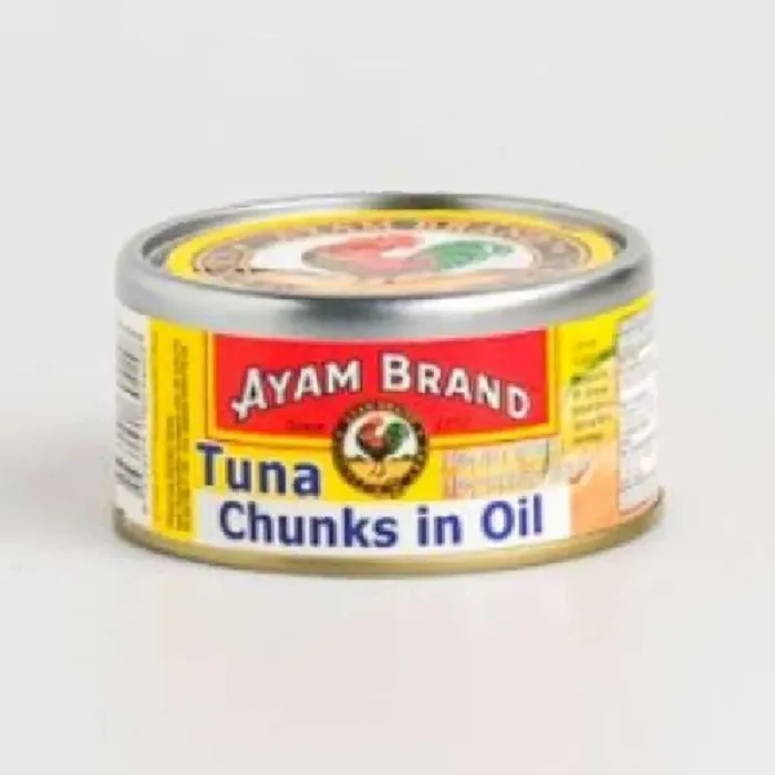 Manfaat : Ikan Tuna memiliki keseimbangan yang menakjubkan Satu kaleng ikan tuna dapat menyediakan 44g protein tanpa lemak berkualitas tinggi hanya dengan 200 kalori. Selain sebagai makanan rendah lemak , tuna merupakan sumber yang sangat baik dari Omega 3 , Selenium , Niasin dan Vitamin b6 dan b12. Kualitas Pemilihan ikan tuna AYAM BRAND? Tuna Chunks, spesifikasi produksi dan quality controlnya dikategorikan yang paling ketat diantara para tuna profesional di dunia. Telah menjadi suatu kebijakan dari AYAM BRAND? melarang produknya mengandung bahan pengawet, MSG, Lemak trans dan HPB. Sertifikasi : Pangan yang aman Ikan Tuna AYAM BRAND? diproduksi dibawah sertifikasi standar HACCP dan ISO 9001:2008. Produk-produk ini juga telah terdaftar di Uni Eropa dan USA FDA Makanan Halal Produk AYAM BRAND? tuna telah mendapatkan sertifikakasi Halal dari LPPOM MUI Cara Penyimpanan : Simpan di tempat yang sejuk dan terhindar dari sinar matahari langsung Komposisi : Ikan tuna, minya kedelai, air, garamNo reviews found