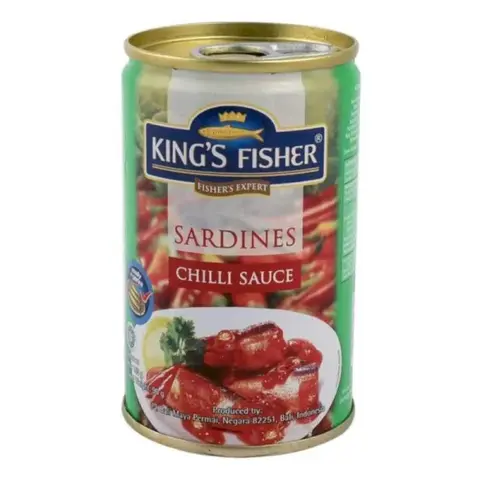 KING'S FISHER Sarden Saus Sambal Tersedia di dalam kemasan kaleng 155gr & 425gr. Bercita rasa saus sambal lezat, pedas dan gurihnya dari bumbu alami,...