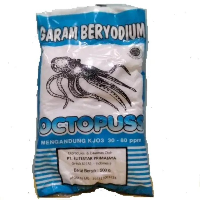 Garam Octopuss Diproduksi memakai GARAM LOKAL Rasa asin,Gurih,Tidak Pahit,Mudah larut,Tidak Berbau & Tidak menggumpal Yodium Dijamin Cukup...