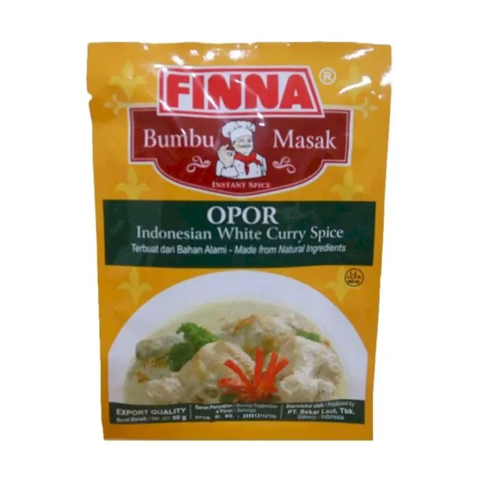 FINNA Bumbu Masak merupakan bumbu instan yang membuat masakan sederhana akan jadi istimewa tanpa harus mencari bumbu dapur dan membuat dapur berantakan. Dengan FINNA Bumbu Masak, masakan jadi lebih gurih, lezat, nikmat dan terasa Rempah Asli Indonesia. Tidak hanya itu saja, semua produksi FINNA menggunakan bahan-bahan alami dan mesin modern untuk menjamin standar keamanan nasional maupun internasional. Selain itu, FINNA menghasilkan berbagai produk makanan yang berkualitas dan menjaga potensi alam agar kontinuitas bahan dapat dijaga. Seluruh makanan yang FINNA produksi 100% terbuat dari bahan alami dan diproses secara higienis sehingga menjadi makanan yang nikmat, aman dikonsumsi, sehat serta dapat dinikmati masyarakat indonesia dan seluruh dunia. Menariknya lagi, FINNA Bumbu Masak menghadirkan beragam pilihan rasa diantaranya Bumbu Daging Lada Hitam, Bumbu Nasi Goreng, Bumbu Soto, Bumbu Gulai, Bumbu Bali, Bumbu Opor, Bumbu Rendang, Bumbu Rawon, Bumbu Rujak, Bumbu Lodeh, Bumbu Sayur Asam, Bumbu Tom Yum dan lainnya. Maka dari itu, sediakanlah FINNA Bumbu Masak didapur Anda untuk menyempurkan hidangan masakan sehari-hari. />