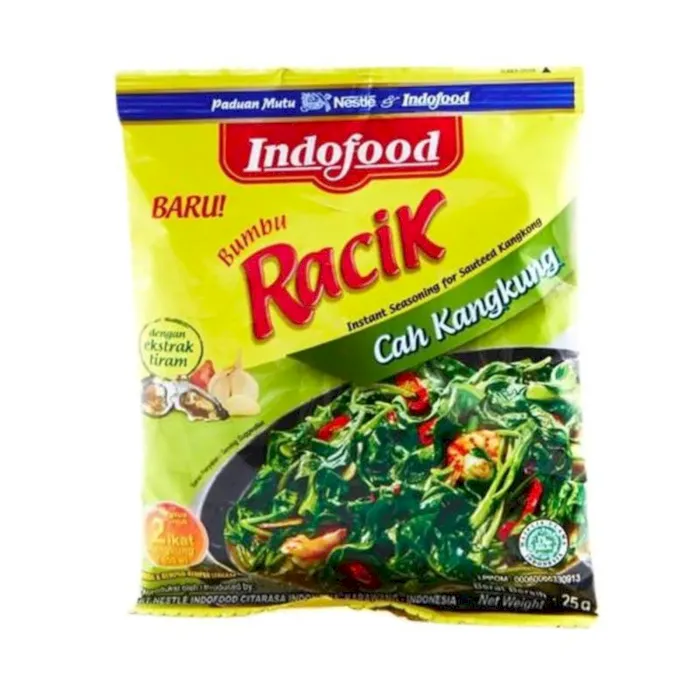 Indofood Racik Cah Kangkung Merupakan bumbu masak cah kangkung yang terbuat dari bumbu dan rempah-rempah asli yang sesuai dengan resep bumbu racik masak...