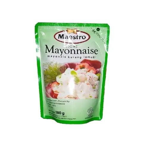 Untuk memperkaya cita rasa makanan , Digunakan sebagai saus untuk salad , sandwich , burger , hotdog , kebab , sebagai saus cocolan ( spesial dip ) untuk kentang goreng , chiken nugget , udang goreng , sebagai campuran saus dengan menambahkan bahan-bahan lain seperti serbuk kari , saus sambal , dll . Maestro Mayonaise terbuat dari minyak kedelai & telur, membuat masakan menjadi lebih nikmat dan lezat. Komposisi: Minyak kedelai, air, kuning telur, cuka, gula, garam, pengental gom xantan , pengawet ( Natrium Benzoat & kalium sorbat ) , pengatur keasaman asam asetat, bubuk mustard, sekuestran.No reviews found