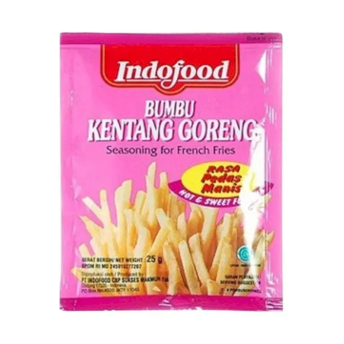 Indofood Bumbu Pedas Manis Merupakan bumbu yang memudahkan Anda untuk menyajikan kentang goreng secara instan sebagai camilan dikala senggang. Tambahan...