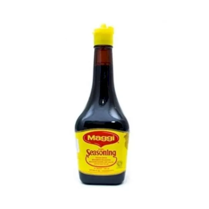 Maggi Seasoning terbuat dari sari kedelai kualitas pilihan. Maggi Seasoning akan memberikan sensasi cita rasa ekstra pada daging, bubur dan bahkan telur mata sapi sederhana. Setiap masakan pun jadi istimewa hanya dengan menambahkan sedikit Maggi Seasoning pada masakan,dan lezatnya dapat dirasakan sekejap saja. Bumbu penyedap rasa dengan aroma dan rasa yang khas dan kuat. Terbuat dari bahan-bahan pilihan sehingga membuat masakan lebih lezat dan gurih. Sesuai untuk menambah kelezatan masakan daging, sup, salad sayur dan telur. Komposisi: Air, Garam, Gandum, Gula, Pewarna Karamel Kelas III, Pengatur Keasaman, Perisa Sintetik, Penguat Rasa (Dinatrium Inosinat Dan Dinatrium Guanilat), Dekstrosa.No reviews found