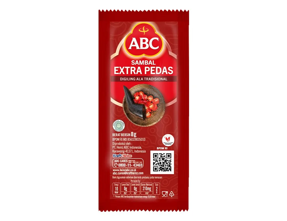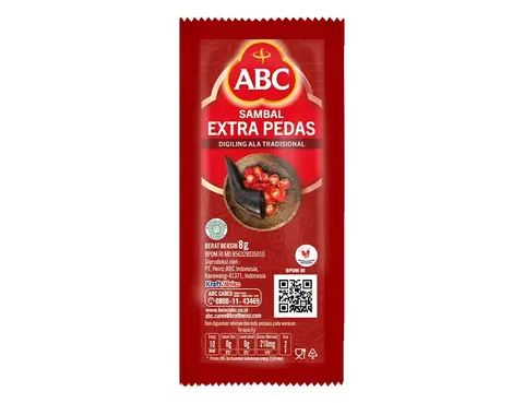 ABC Sambal Extra Pedas merupakan saus sambal yang terbuat dari paduan cabai segar dan bawang putih berkualitas untuk menghasilkan aroma, rasa, dan warna yang menggugah selera. ABC Sambal Extra Pedas diproses secara modern dan higienis untuk menghasilkan saus dengan kekentalan dan kemurnian rasa yang pas, sehingga memberikan cita rasa istimewa pada setiap makanan. Dengan rasa pedas yang pas dan mantap tentu dapat menambah aroma dan membuat acara makan lebih menyenangkan.. ABC Sambal Extra Pedas hadir dalam kemasan pouch dan membuat hidangan makanan lebih istimewa untuk disantap yang praktis memudahkan saat digunakan dan disimpan.