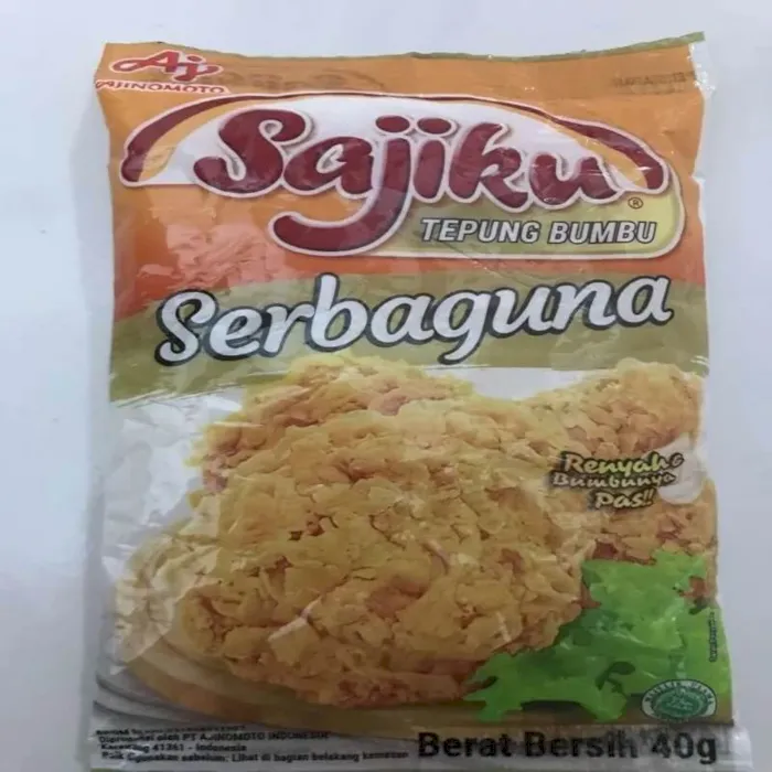 Sajiku Serbaguna Renyah dan bumbunya pas Sajiku tepung bumbu seebaguna adalah perpaduan tepat antara tepung dan rempah pilihan, menghasilkan gorengan...
