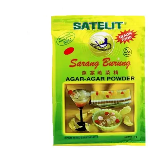 PT Satelit Sriti adalah salah satu perusahaan agar-agar di Indonesia yang berpengalaman lebih dari tiga puluh tahun. Agar-agar berkualitas dengan tambahan sari sarang burung walet cocok dikonsumsi semua umur, termasuk dalam makanan yang sehat untuk pencernaan dan sangat cocok bagi yang sedang melaksanakan program diet, serta bagus untuk menyehatkan kulit Tersedia dalam berbagai warna : -Coklat -Hijau -Merah -Putih