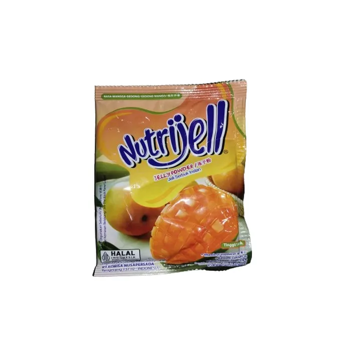 Adalah produk bubuk jelly yang dijual dengan berat 15g. Produk ini memberikan rasa mangga yang segar dan lezat pada makanan atau minuman yang diolah. Keuntungan dari menggunakan Nutrijell jelly powder adalah mudah digunakan dan memberikan rasa yang enak pada makanan atau minuman yang diolah.