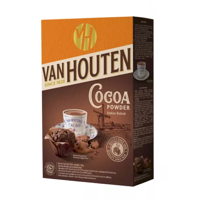 Van Houten Cocoa Powder Bubuk cokelat yang terbuat dari biji cokelat pilihan yang berkualitas. Memberikan rasa dan aroma cokelat yang asli pada kue buatan...