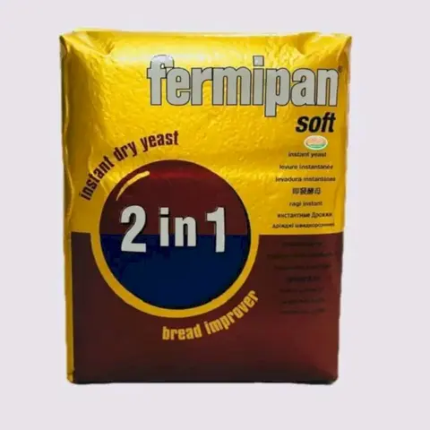Fermipan Soft 2 in 1 Ragi kering instant yang memiliki kemampuan tinggi dalam berfermentasi, yang baik digunakan untuk resep dengan kadar gula lebih dari 5%.