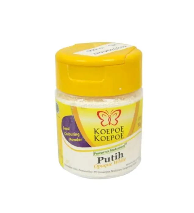 Koepoe Koepoe Opaque White Digunakan sebagai bahan tambahan pangan untuk memberikan warna putih pada makanan dan minuman. Masa Simpan : 5 tahun.
