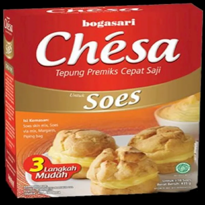 Bogasari hadir dengan produk terbaru, Chesa, Tepung Premiks Cepat Saji dengan 5 varian yaitu Soes, Pao, Cookies, Truffle, dan Pancake. Target pasar pengguna tepung Chesa ini adalah kelompok usia 25-35 tahun dengan segmen khusus kalangan wanita. Baik mereka yang berprofesi sebagai ibu rumah tangga maupun yang merangkap sebagai wanita karir atau pebisnis. Termasuk wanita yang masih berstatus single (belum menikah). Sebagai wujud dari 3 langkah mudah tersebut, produk Chesa ini sudah dilengkapi dengan bahan dan perlengkapan yang diperlukan dalam proses pembutan produknya. Sementara ukuran volume atau berat bersih dari kelima varian tepung Chesa ini beragam dan sudah disesuaikan dengan standar kebutuhan para calon pengguna.No reviews found