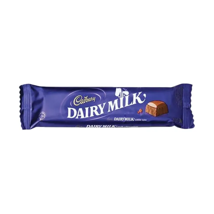 Aroma coklat yang menggoda akan langsung menyapa indra penciuman saat Anda membuka kemasan coklat ini. Cadbury Dairy Milk merupakan varian coklat batang original sekaligus unggulan dari Cadbury yang telah menemani lidah para penikmat coklat sejak tahun 1981. Coklatnya melebur seketika di mulut dan memberikan rasa yang luar biasa berkat perpaduan resep rahasia, coklat, susu, dan bahan-bahan pilihan berkualitas sehingga menghasilkan coklat batang lezat dengan kemurniaan dan kesempurnaan rasa. Cadbury Dairy Milk memiliki kandungan susu lebih banyak dibanding coklat lainnya, sejumlah satu setengah gelas susu pada tiap bar-nya. Rasakan ledakan kebaikan susu berpadu coklat premium lezat dari Cadbury Dairy Milk. Hadir dalam bentuk coklat blok, menjadikan Cadbury Dairy Milk camilan yang pas untuk dikunyah dan dinikmati bersama-sama teman atau keluarga kapan dan di mana saja.