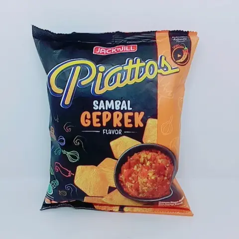 Piattos Sambal Geprek piattos sambal geprek menyajikan keripik kentang bercita rasa sambal geprek dengan perpaduan bawang putih dan cabai khas indonesia