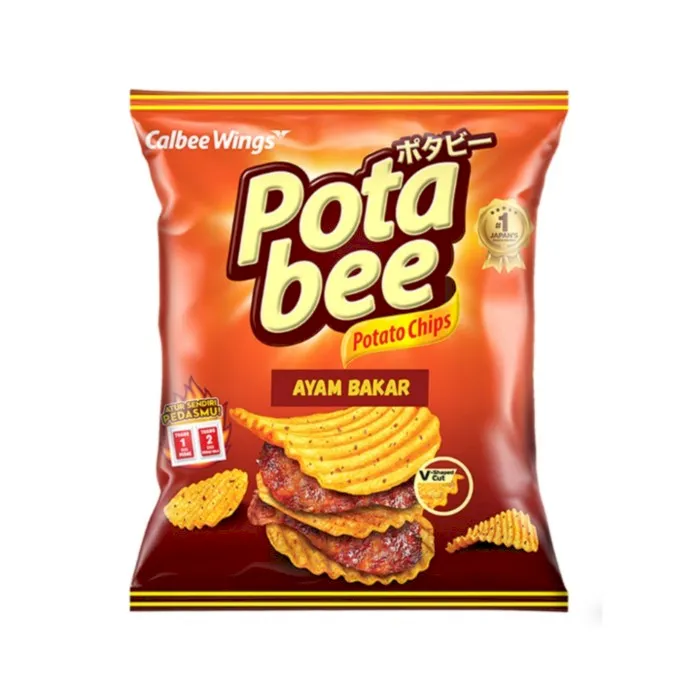 Adalah camilan keripik kentang persembahan Wings yang memiliki rasa khas dari kentang asli yang diberi tambahan taburan bumbu ayam bakar diatasnya membuat kombinasi rasa ayam bakar yang gurih dengan tekstur renyah dari keripik kentang. Kentang diproduksi dengan teknologi modern V-cut yang mampu membuat tekstur keripik yang tebal dan renyah membuat rasa kentangnya utuh dan mampu menyempurnakan taburan rasa yang gurih dan lezat. Hadir dalam kemasan plastik premium yang benar-benar menjaga rasa dan praktis dibawa kemana saja. Tersedia dalam kemasan siap saji 68 gram, sangat cocok untuk menjadi teman di kala bersantai atau berkumpul dengan teman, sahabat, dan keluarga. Rasakan renyahnya keripik kentang dengan taburan bumbu nikmat dari POTABEE Potato Chips Ayam Bakar 68 g.No reviews found