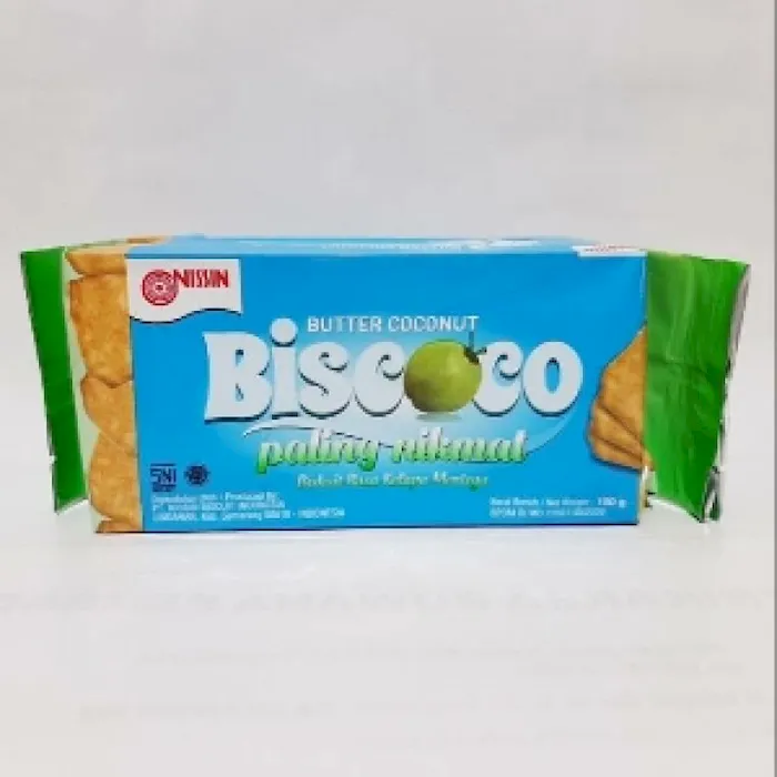 Merupakan biscuit lembut dan renyah rasa kelapa dengan diolesi mentega yang gurih berbablut taburan gula pasir yang manis, menambah kenikmatan citarasa biskuit kelapa di kelasnya. Diproduksi oleh pabrikan PT. NIssin Indonesia yang sudah tidak diragukan lagi untuk setiap rasa produk yang dibuat dan dikeluarkan ke pasaran. Biscuit ini pas untuk disajikan bersama teh, kopi, maupun susu di saat santai anda di tengah keluarga maupun teman-teman saat berkumpul.No reviews found