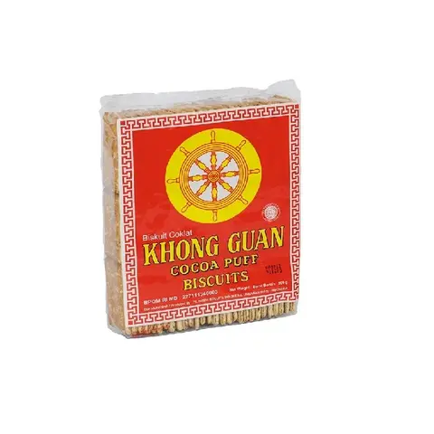 Khong Guan Cocoa Puff Biskuit renyah yang gurih dan lezat, cocok untuk teman minum teh ataupun kopi Krekers coklat bertabur gula dari khong guan berat...
