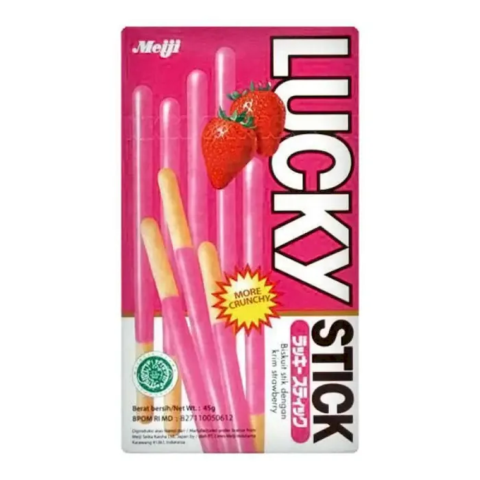 Meiji Lucky Stick Strawbery Biskuit Terbuat dari bahan berkualitas Sangat lezat, nikmat & memuaskan Cocok untuk dinikmati pada saat santai bersama...