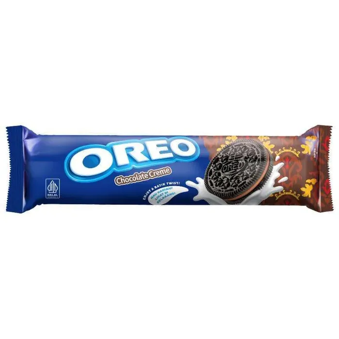 Untuk Snack Sekolah - Oreo hadir sebagai cemilan favorit sejak tahun 1912 Oreo tersedia dalam berbagai varian rasa dan bentuk, salah satunya adalah Oreo Chocolate Creme Oreo Chocolate Creme adalah biskuit sandwich coklat dengan krim rasa vanilla yang lezat Oreo Chocolate Creme sebagai salah satu rasa original dan rasa yang paling diminati Oreo terbuat dari coklat dan bahan baku berkualitas sehingga sangat aman untuk dikonsumsi oleh semua kalangan Sangat cocok untuk dibawa bepergian atau sebagai jajan sekolah anak Oreo sangat cocok dinikmati sebagai cemilan saat santai bersama keluarga "Diputar, Dijilat dan Dicelupin" adalah salah satu cara populer untuk menikmati Oreo Bisa dinikmati sebagai cemilan atau snack pendamping, terutama dengan susu, kopi atau teh HalalNo reviews found