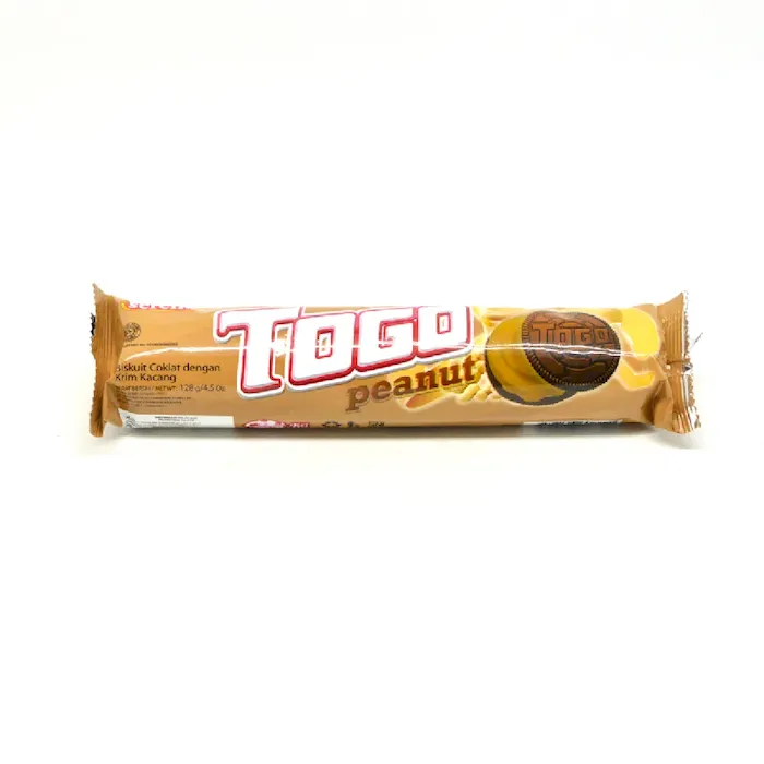 Togo Peanut Adalah biskuit lapis dengan selai cokelat yang di proses secara higenis meciptakan rasa yang nikmat. Produk ini cocok di konsumsi dimana saja...