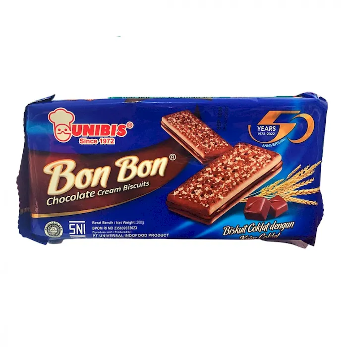Unibis Bon Bon Coklat Biskuit coklat yang ditaburi gula dengan menggunakan kualitas yang tinggi dan cocok untuk menemani Anda di waktu yang santai