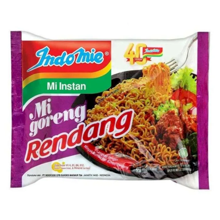 Indomie Goreng Rendang terinspirasi dari cita rasa khas kuliner lokal Indonesia asal Padang. Aroma bumbu rendang yang khas berpadu bawang goreng renyah hadirkan rasa mie goreng yang unik dan menggoda. Indomie Goreng Rendang terbuat dari tepung terigu berkualitas dengan paduan rempah-rempah pilihan terbaik, serta diproses dengan higienis menggunakan standar internasional dan teknologi berkualitas tinggi. Juga dilengkapi tambahan fortifikasi mineral dan vitamin A, B1, B6, B12, Niasin, Asam Folat & Mineral Zat Besi yang dibutuhkan tubuh.No reviews found