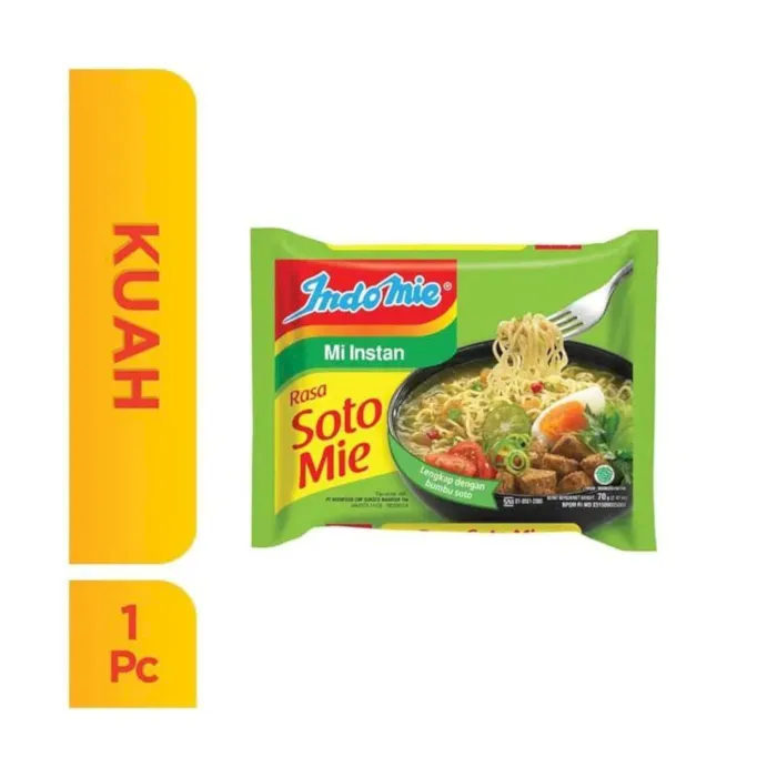 Siapa yang dapat menolak mie instan. Mie instan merupakan makanan favorit semua orang dari segala usia. Seperti dengan Mie Instan Indomie. Indomie merupakan salah satu produsen mie instan terbesar di dunia. Indomie hadir dalam banyak variasi dari rasa sup klasik seperti ayam, sayuran dan kari ayam hingga rasa Indomie Mie Instan Soto. Untuk rasanya pun sudah tidak diragukan lagi. Mie Instan dari Indomie Rasa Soto ini terbuat dari bahan ? bahan pilihan, tepung dengan kualitas terbaik dan menggunakan rempah ? rempah segar dari sumber daya alam Indonesia, sehingga memberikan rasa yang unik dan lezat. Selain itu, Mie Instan dari Indomie juga memiliki tekstur mie yang lembut, kenyal dan rasa yang gurih. Mudah dibuat, cara penyajiannya pun tidak perlu memakan waktu yang lama.