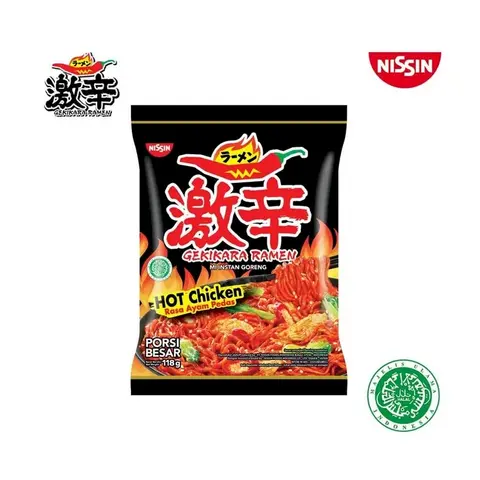 Merupakan mie ramen instan pertama buatan Indonesia dgn porsi standar mie instan di Indonesia. Gekikara Ramen sendiri berarti mie kuah yg berbumbu dan pedas berempah biasanya. Dan, Gekikara Ramen by Nissin ini berselera pedas. menyegarkan dan enak tentu saja. Sudah bersertifikasi BPOM dan halal logo MUI, fakta nutrisi dan ingrediens lengkap, serta petunjuk penyajian yg informatif menghiasi seluruh kemasan dari mie ini. Bertekstur mie agak kecil namun kenyal khas Nissin dan mie yang sudah dasarnya berbumbu, layak menjadi salah satu mie instan favorit. Ramen instant pertama di Indonesia dengan mi kenyal dan bumbu ekstra pedas yang menyatu. Mi Jepang dengan tekstur mi yang kenyal. Gekikara Ramen diracik dengan bahan pilihan dan resep istimewa super pedas yang memberikan sensasi baru untuk RAMEN LOVERS. Nikmati Gekikara Ramen untuk melengkapi harimu. Cara Masak :- Rebus mi dan sayuran kering ke dalam 500ml air