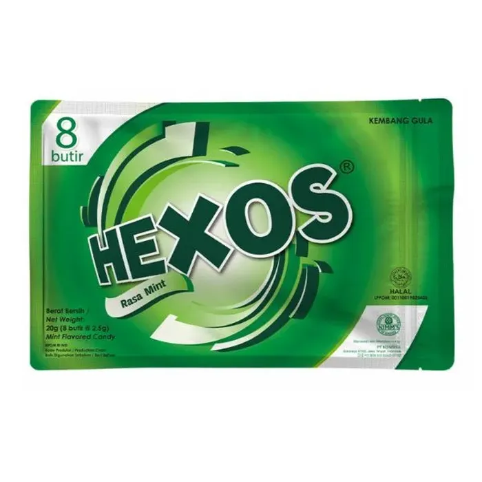 BARU! Kini Tersedia Hexos isi 8 butir dengan kemasan ziplock , lebih praktis dan mudah dibawa kemana saja. Hexos merupakan permen mint yang memberikan sensasi melegakan tenggorokan dan menyegarkan mulut sehingga buat hari-harimu menjadi segar dan nyaman saat menggunakan masker.