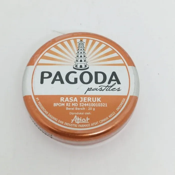 Nahhhh...ini adalah salah satu permen legenda Indonesia. Adalah Pagoda Pastiles, satu brand klasik buatan Indonesia yg terkenal dgn bentuk kemasannya yg khas bulat, dan rasanya yg bagi sebagian milenials sekarang: ga enak. Hahahaa... Sini Mimin ceritain dikit mengenai permen jadul-ajib-katanya ga enak ini: Permen ini, berbentuk butiran wajik/jajaran genjang kecil2, warnanya item kek pup cicak. Buat beberapa varian klasiknya, rasanya ga enak ^ ^'....Tapiiiii, itu kalo lo semua terbiasa sama rasa permen2 modern berjenis manis-sok gaul-menggemukkan :D. Pagoda Pastiles ini, memang permen sesuai jenisnya yaitu Pastiles, yaitu gula-gula yg mengandung obat utk pelega tenggorokan dan batuk serta penghancur bau mulut yg kuat. Wajar lah ga enak dikit2 ;), namun kalo sudah terbiasa ..enak ko, sumpeh :D. Saat ini Pagoda Pastiles sudah mempunyai permen2 lain turunannya yg beradaptasi sama "rasa permen2 modern berjenis manis-sok gaul-menggemukkan", namun yg legenda last forever, don't you think? ;) Varian: Orange (Oren) Pagoda Pastiles classic: Kemasan Kaleng berbagai warna sesuai rasa, beratribut BPOM RI, produksi PT. Perseroan Dagang dan Industri Farmasi AFIAT - Cimahi. YANG TAHUN 2019 MASIH MAKAN INI PERMEN ABSEN DGN TESTI SETELAH PEMBELIAN DIBAWAH YOO..No reviews found