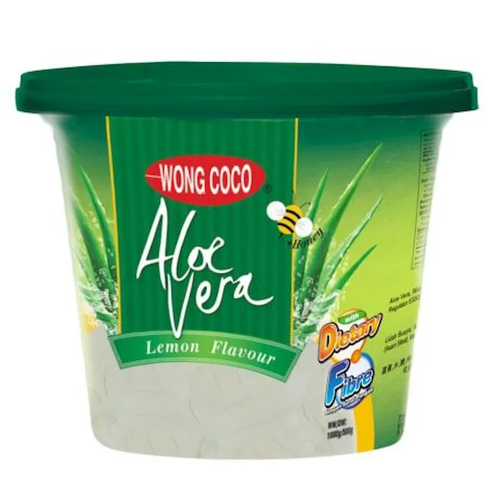Aloe Vera terkenal dengan manfaat serat tinggi yang baik untuk pencernaan. Wong Coco Aloe Vera dibuat dengan aloe vera dari perkebunan sendiri tanpa menggunakan pemanis buatan . Wong Coco Aloe Vera berisi aloe vera yang dibentuk dalam potongan cubes (kotak), dipadukan dengan rasa lemon dan madu. Nikmati sensasi crunchy Wong Coco Aloe Vera yang cocok untuk disajikan dalam keluarga.