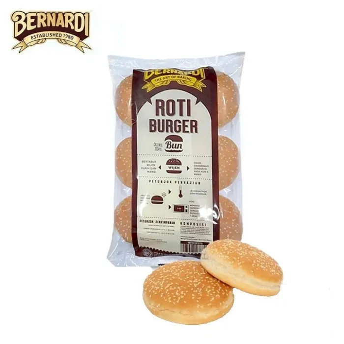 Bernardi Roti Burger Wijen Terbuat dari campuran tepung roti dengan kualitas terbaik di olah dengan profesional menghasilkan roti burger yang sangat lebut...
