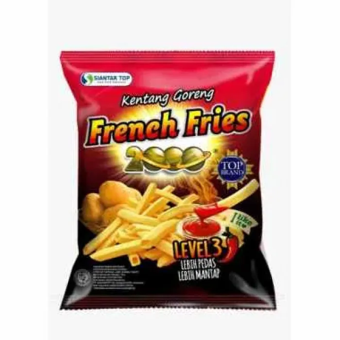 Mengkonsumsi camilan alias ngemil sudah menjadi bagian dari gaya hidup masyarakat Indonesia. Camilan merupakan makanan yang tepat untuk di santap ketika santai karena penyajiannya mudah, tidak terlalu membuat kenyang, dan pastinya mempunyai rasa yang nikmat. Salah satu camilan yang dapat menemani Anda di waktu santai dan mempunyai rasa yang lezat adalah Siantar Top 2000 French Fries SAOS LEVEL 3. Produk ini merupakan snack yang terbuat dari kentang pilihan dan diolah dengan bumbu istimewa sehingga menghasilkan kentang yang gurih dan renyah ditambah dengan saus sambal tomat yang menggugah selera.No reviews found