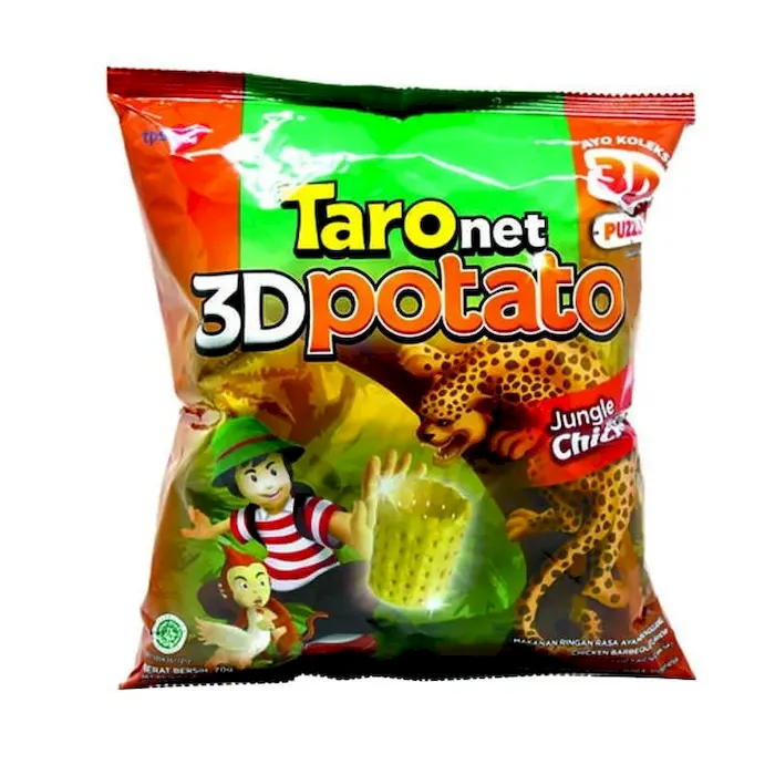 Snack yang terkenal dengan desain yang khas, membuat Taro selalu menjadi camilan yang banyak disukai. Apalagi, rasa yang terbilang renyah dan gurih ini, menjadikan Taro sebagai salah satu camilan yang selalu bikin nagih. Bakan, terbuat dari perpaduan bahan terigu, minyak nabati, tapioka dan bumbu varian rasa lainnya, Snack Taro sukses mencuri perhatian masyarakat. Untuk varian rasanya sendiri cukup lengkap, Anda bisa mencicipi rasa mulai dari Teriyaki, Italian Pizza, Cowboy Steak, Jungle Chicken, Net Seaweed dan Potato Barbeque.No reviews found