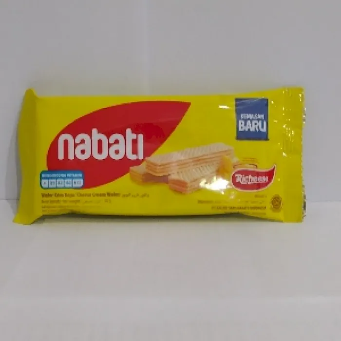 Camilan merupakan salah satu jenis makanan yang dapat mengganjal perut Anda ketika lapar melanda. Dengan memakan camilan, perut Anda tidak mudah kenyang walaupun memakan dalam jumlah yang cukup banyak. Banyak sekali jenis camilan yang bisa Anda santap salah satunya adalah Nabati Richeese Wafer Krim Keju. Wafer berbentuk persegi panjang ini terbuat dari bahan-bahan berkualitas yang diprosuksi secara modern dan higienis yang cocok untuk dimakan oleh siapapun. Lalu, camilan ini juga memiliki krim Keju pada setiap lapisan wafer yang khas dan lezat. Selain itu, Nabati Richeese Wafer Krim Keju juga mengandung beragam vitamin yang baik untuk tubuh Anda, seperti Vitamin A, Vitamin B1, Vitamin B2, Vitamin B6, dan Vitamin B12. Jadi tunggu apalagi, selalu sediakan Nabati Richeese Wafer Krim Keju di rumah Anda.No reviews found