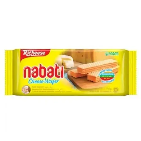 Camilan merupakan makanan yang tepat untuk di santap ketika santai karena penyajiannya mudah, tidak terlalu membuat kenyang, dan pastinya mempunyai rasa yang lezat dan nikmat. Untuk Anda yang senang menyantap camilan, wafer bisa menjadi salah satu pilihannya. Renyahnya wafer dan krim yang manis membuat camilan ini menjadi favorit segala usia. Berbagai merek wafer baru pun mulai bermunculan. Salah satunya Nabati Richeese Wefer Keju. Produk ini merupakan wafer krim keju yang terbuat dari kombinasi keju asli dan bahan-bahan pilihan berkualitas untuk menghasilkan wafer renyah dengan rasa yang istimewa. Terdiri dari kombinasi wafer krispi dan krim keju premium di setiap lapisnya, memberikan Anda sensasi makan keju yang tak terlupakan. Ideal dinikmati saat santai bersama keluarga karena terbuat dari bahan-bahan pilihan dan proses secara higienis.
