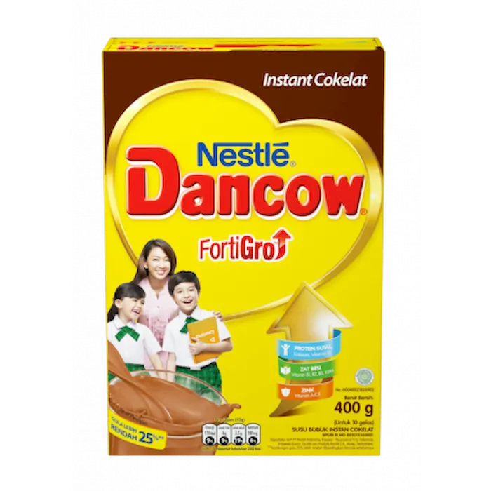 Susu bubuk yang mengandung nutrisi untuk Siap Sekolah, dibuat dengan Susu Segar dan merupakan sumber Protein Susu, Kaya Kalsium, Vitamin, Zat Besi dan Zink, serta mengandung kolin yang berperan untuk membantu memenuhi gizi anak. DANCOW FortiGro mengandung nutrisi untuk anak pada usia pertumbuhan yang memiliki banyak aktivitas terutama pada saat memasuki usia sekolah. •Protein Susu, Kalsium & Vit. D merupakan nutrisi penting yang dapat membantu pertumbuhan dan perkembangan tubuh terutama sel-sel tulang dan otot agar tumbuh sehat dan kuat. •Zat Besi, Vit. B1, B2, B3 dan Kolin yang dapat membantu menunjang konsentrasi dan daya ingat sehingga meningkatkan kemampuan proses belajar anak. •Zink, Vit. A, C, & E merupakan nutrisi yang dapat meningkatkan sistem kekebalan tubuh. •Omega 6 dan Minyak ikan dapat membantu mendukung pertumbuhan dan perkembangan otak.