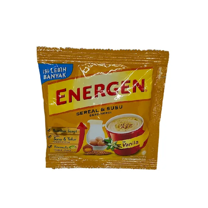 Energen Vanila Energen minuman serbuk sereal dan susu dengan Sigmavit, yaitu sumber Vit A, Vit B1, Vit B2, Vit B6, Vit B12, Vit C, Vit D, Vit E, Asam...