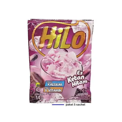Hilo Es Ketan Hitam HiLo terkenal dgn minuman sehat yg tinggi kalsium dan rendah lemak. Hadir dalam kemasan2 sachet praktis dgn varian minuman serbuk...