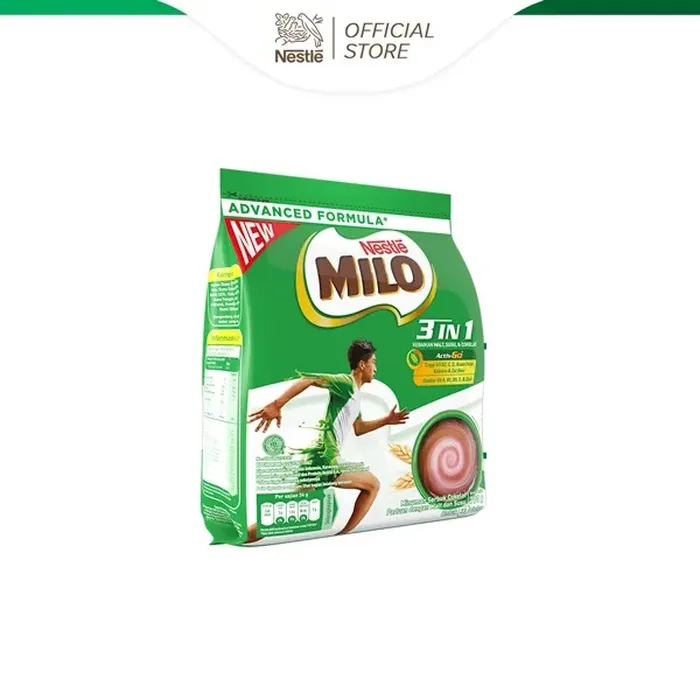 Minuman serbuk cokelat paduan, ekstrak malt (*Barli) yang unik dan juga susu. Lebih tinggi zat besi, Vitamin B12, C, dan D untuk mencegah defisiensi zat besi dan mendukung performa anak aktif. MILO 3in1 33% lebih rendah gula tambahan/ sukrosa dari produk MILO sebelumnya per sajian 35g (9g 6g). Sehingga, kadar gula dalam MILO lebih sesuai anjuran untuk anak. Meskipun Gula Lebih Rendah, kandungan malt dan cocoa yang lebih tinggi membantu meningkatkan rasa khas MILO yang disukai anak Lebih tinggi Malt. Malt merupakan biji-bijian dari serealia utuh yang dikeringkan, mengandung karbohidrat kompleks untuk dukung energi anak sepanjang hari. Saran penyimpanan: simpan di suhu ruangan SARAN PENYAJIAN (HANGAT ATAU DINGIN) -Tuangkan 4 sendok makan penuh MILO (35g) -Larutkan dengan air hangat (175 ml), aduk hingga rata -Tambahkan es batu untuk penyajian dingin KOMPOSISI: Padatan *Susu (*Susu Bubuk Skim, *Susu Bubuk), Ekstrak Malt (*Barli), Gula, Bubuk Kakao, Serat Pangan, Minyak Nabati, 4 Mineral, Premiks Vitamin, Pemanis Alami Glikosida Steviol. *Mengandung allergenNo reviews found