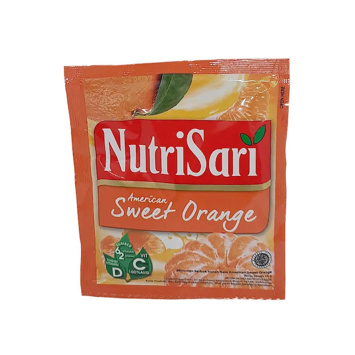 Nutrisari American Sweet Orange diperkaya dengan 100% AKG vitamin C. Selain itu, dalam setiap gelas seduhannya, minuman instan ini akan memberikan vitamin A, thianin, niasin, piridoksin, asam folat, vitamin C, dan vitamin E yang sangat baik untuk kebutuhan nutrisimu. Satu gelas NutriSari ini setara dengan dua buah jeruk biasa. Tanpa bahan pengawet, NutriSari ini akan menjadi pilihan minuman instan yang baik untuk hari-harimu yang segar dan sehat. Rasakan kesegaran dan manfaat buah jeruk asli dari NutriSari American Sweet Orange bersama keluarga setiap hari.