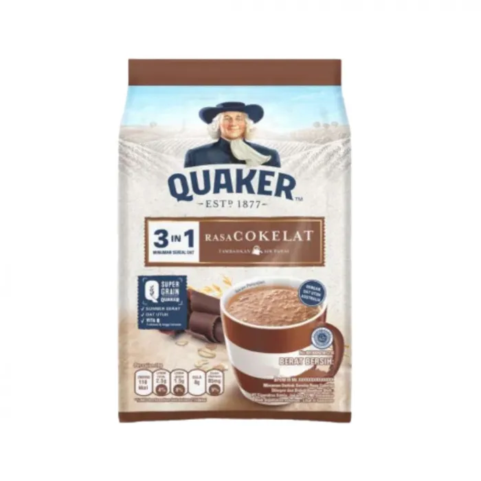 Quaker Coklat Adalah Quaker 3in1 dengan rasa Chocolate yang terdiri dari 8 sachet dengan @28g