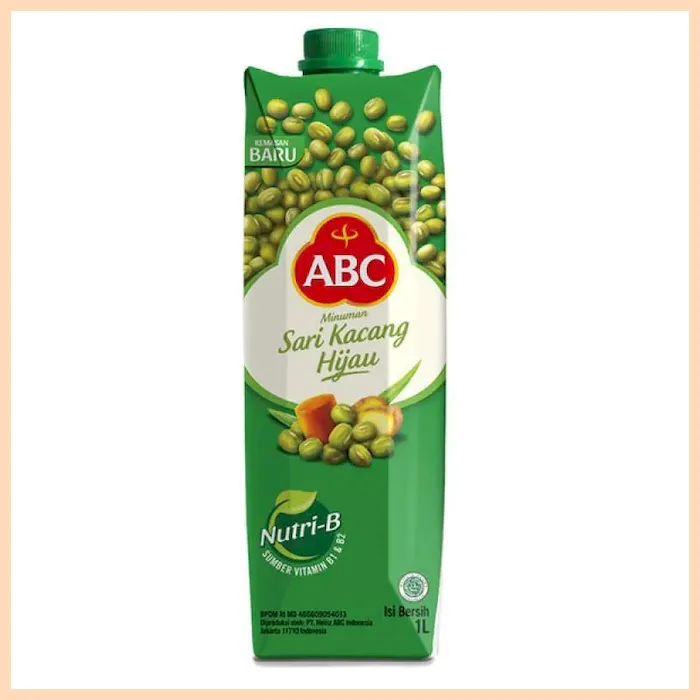 ABC Kacang Hijau merupakan minuman yang terbuat dari 80% sari kacang hijau asli yang mampu menghilangkan rasa haus. Minuman sari kacang hijau ini dibuat dengan mesin canggih dan dikemas secara higenis menggunakan Tetra Brik Aseptik serta Tetra Prisma Aseptik, sehingga menghasilkan minuman kacang hijau yang segar dan aman untuk dikonsumsi sehari-hari. ABC Kacang Hijau juga dapat membantu Anda dalam membantu mengurangi rasa lapar. Lalu, ABC Kacang Hijau juga memiliki kandungan tinggi serat pangan yang diperlukan oleh tubuh. Selain itu, kacang hijau itu sendiri juga memiliki beragam kandungan nutrisi seperti vitamin A, vitamin K, vitamin B6, folat, zat besi, potassium, fosfor, magnesium, mangan, dan asam pantotenat. Kemudian, tidak lupa minuman sari kacang hijau ini hadir dengan kemasan praktis yang dapat dinikmati dimanapun dan kapanpun, akan lebih nikmat jika dikonsumsi dalam keadaan dingin. Jadi, segera konsumsi ABC Kacang Hijau yang segar dan sehat setiap saat.