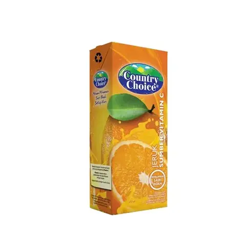 Kemanapun kamu pergi Country Choice selalu siap membuatmu tetap fresh sepanjang hari. Dengan kesegaran buah pilihan, Country Choice siap menemani hari-harimu dimana saja dan kapan saja. Hadir dengan berbagai rasa buah almai yang Yummy dan berkualitas yaitu Jeruk, Jambu, Mangga dan Apel membuat Country Choice cocok dijadikan pilihan tepat untuk dinikmati bersama teman dan keluarga. Selain itu, minuman Real Jus ini juga juga kaya akan manfaat yang dapat memenuhi kebutuhan nutrisi harian dengan cara yang praktis dan hemat, sehingga kamu bisa kembali bersemangat menjalani aktivitas. Terdiri dari kemasan kotak (Tetra Pak) dengan ukuran 250ml dan 1L.
