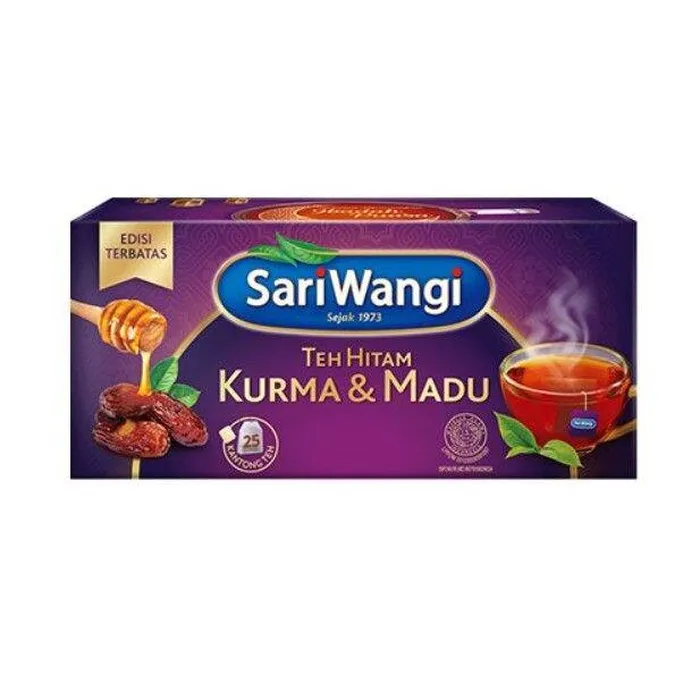 Kini hadir SariWangi Teh Hitam Kurma dan Madu, teh hitam Indonesia dengan aroma manis yang khas. Perpaduan daun teh berkualitas dari alam dengan kurma dan madu, hasilkan secangkir teh hangat beraroma manis yang khas, cocok untuk kembalikan semangatmu dan keluargamu, setelah seharian berpuasa di bulan Ramadhan. Dapatkan Sariwangi Teh Kurma dan Madu edisi terbatas yang hanya dijual khusus di e-commerce kesayanganmu dan diluncurkan khusus menyambut bulan Ramadhan. Sariwangi Teh Hitam Kurma dan Madu bersertifikasi Rainforest Alliance, dengan komitmen membantu para penghasil teh untuk memiliki kehidupan yang lebih baik. Dapat dinikmati sebagai minuman panas atau dingin. Untuk menambahkan rasa, bisa dengan ditambahkan madu sesuai selera. Tanpa pewarna dan tanpa bahan pengawet. Cocok untuk menemani momen hangat bicaramu bersama orang tersayang di bulan Ramadhan. #MariBicara dengan secangkir teh nikmat dengan aroma manis yang khas. Saatnya Bicara, Saatnya SariWangi #MariBicara Komposisi : Teh Hitam 97%, Perisa Sintetik (Mengandung Antioksidan DL Alfa Tokoferol), Kurma 0.05%, Madu 0.05%. Dapat mengandung protein kedelai.No reviews found