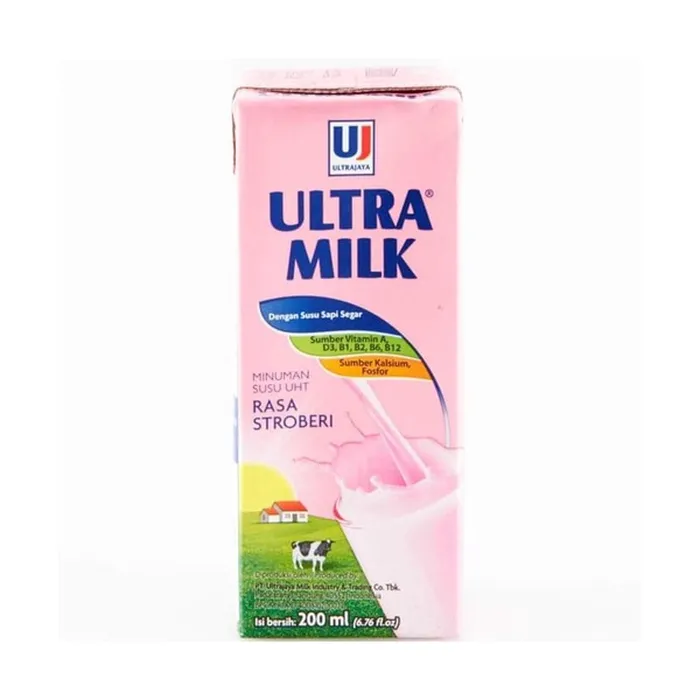 Ultra Milk Strawbery Merupakan minuman bergizi yang baik untuk pertumbuhan dan kesehatan, susu UHT ini akan bekerja lebih baik bila dikonsumsi oleh anak...