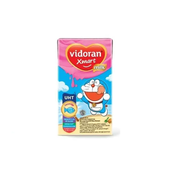 Vidoran Xmart UHT merupakan susu Ready-to-drink yang diformulasikan untuk memenuhi kebutuhan nutrisi sehari-hari. Susu ini dibuat menggunakan susu sapi segar dan diproses menggunakan teknologi UHT atau Ultra High Temperature, yakni memanaskan susu segar yang baru diperas pada suhu 135 hingga 150 derajat Celsius dengan kurun waktu sekitar 2-3 detik. Proses pemanasan ini bertujuan untuk membunuh mikroorganisme berbahaya dan juga menjaga nutrisi yang ada di dalam susu. Lalu, Vidoran Xmart menjadi satu-satu susu yang terbuat dari susu berkualitas dari peternakan sapi di New Zealand dengan kandungan formula imunUp yang diperkaya dengan Cod Liver Oil (Minyak Hati Ikan Kod), Vitamin C, Vitamin B2, Vitamin B6, Vitamin B12, Vitamin D, Vitamin E, Kalsium, dan Fosfor. Kemudian, susu ini memiliki beragam kebaikan untuk Si Kecil agar selalu aktif, mudah bersosialisasi, tumbuh secara optimal, memiliki ide hebat, selalu ingin tahu, memiliki daya tahan kuat, memiliki nafsu makan yang baik, serta memiliki inisiatif yang tinggi. Menariknya, Susu Vidoran Xmart memiliki varian rasa Coklat yang memadukan segarnya susu sapi berkualitas dan nikmatnya cokelat guna menciptakan rasa yang unik dan tentunya lezat. Oleh karena itu, yuk jadikan tumbuh kembang Si Kecil lebih optimal dengan minum Susu Vidoran Xmart UHT Coklat. Kini dengan Formula ImunUp yang tinggi Vitamin C, D3, E, & Zinc,Omega 3 & 6, dan berbagai vitamin & mineral lainnya yang dapat dikonsumsi setiap hari untuk membantu jaga daya tahan tubuh si kecil dengan memenuhi kebutuhan gizi hariannyaNo reviews found