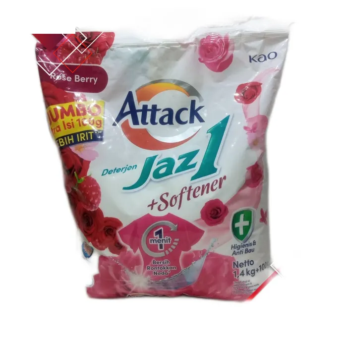 Attack Jaz1 + Softener Rose Berry Keunggulan Jaz1 + Softener dengan Teknologi dari Jepang Noda daki, polusi, dan debu di kerah dan lengan baju rontok...