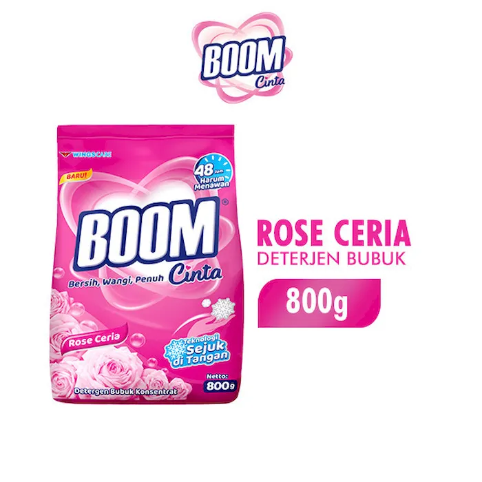 Detergent BOOM Cinta, detergent bubuk perwujudan cinta Ibu untuk keluarga. Mampu membersihkan noda, menjaga warna pakaian dan menjaga tangan ibu tetap sejuk dan nyaman saat mencuci. Harum menawan hingga 48 jam, membuat keluarga semakin BUCIN ke Ibu! Keunggulan : - Harga Ekonomis - Teknologi Sejuk di tangan - Bersih Tanpa Noda - Harum Menawan Hingga 48 jam - Warna Cemerlang hingga 20x pencucianNo reviews found
